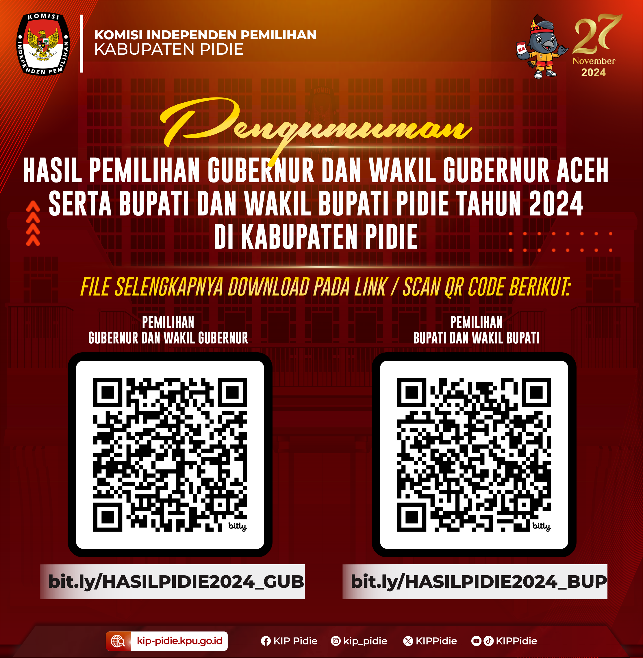 Pengumuman Hasil Pemilihan Serentak Tahun 2024 di Kabupaten Pidie