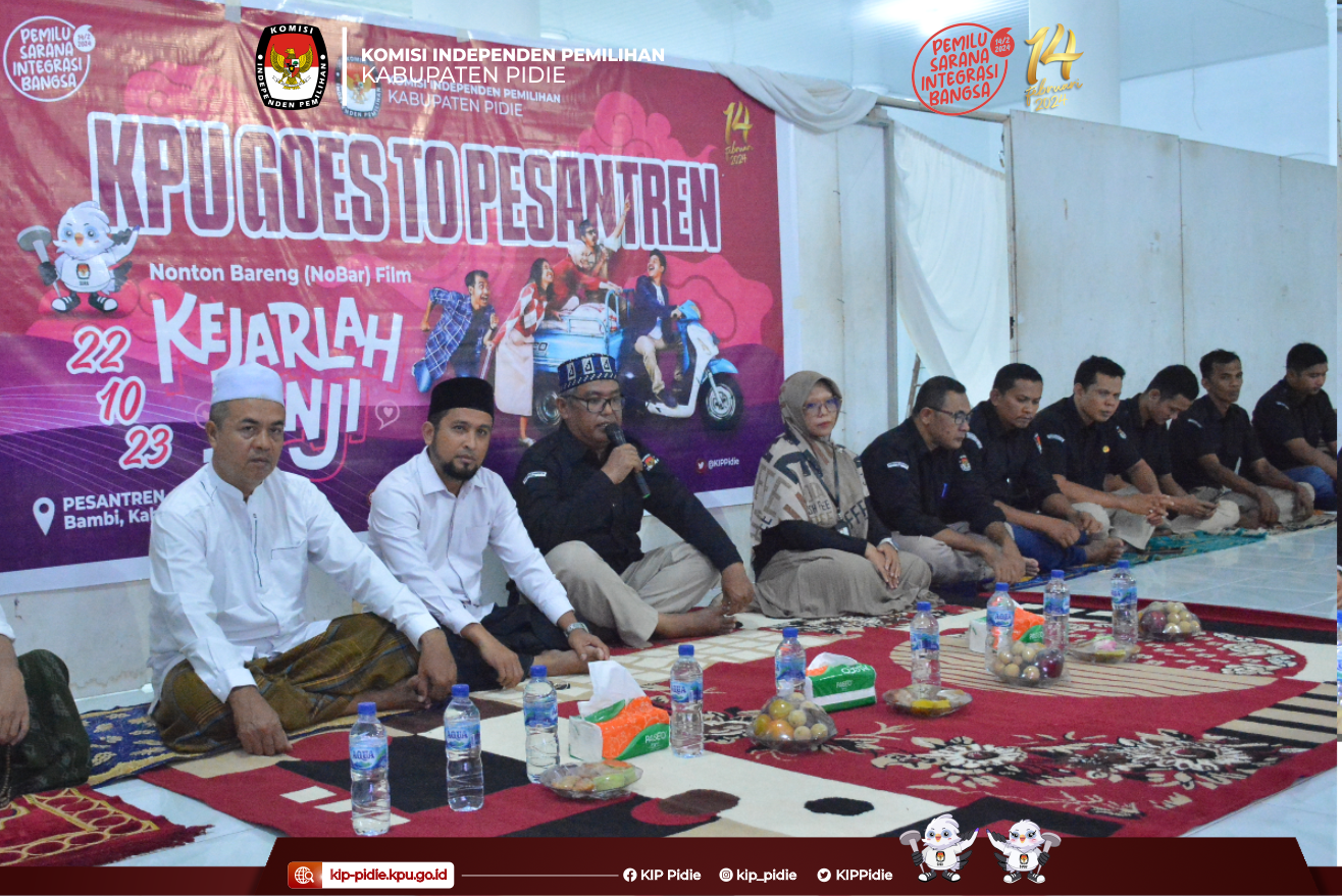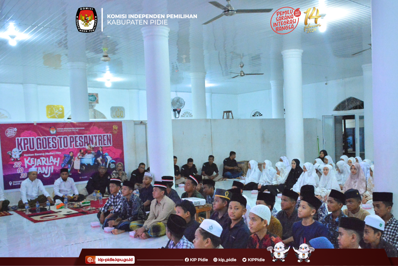 #TemanPemilih Sekretariat KIP Kabupaten Pidie melaksanakan kegiatan KPU Goes To Pesantren di Madrasah Aliyah Pesantren Modern Terpadu (PMT) Dayah Al Furqan Bambi. Minggu (22/10).