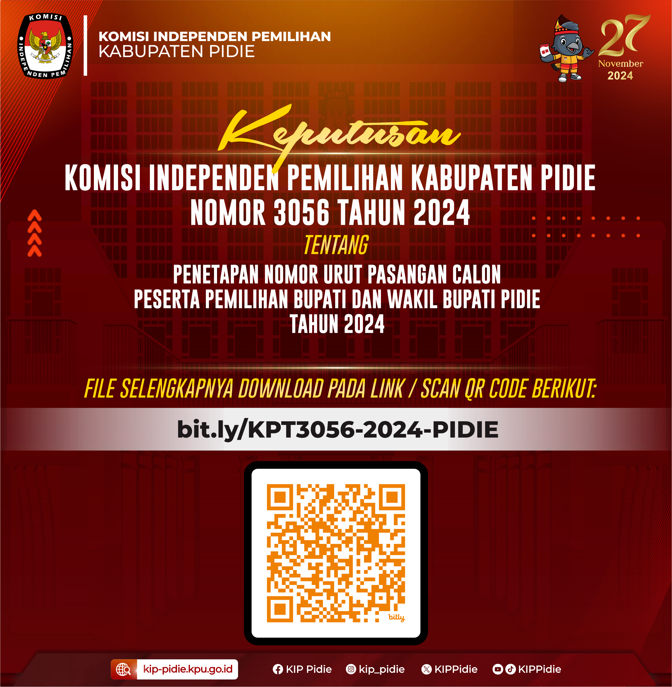 Penetapan Nomor Urut Pasangan Calon Peserta Pemilihan Bupati dan Wakil Bupati Pidie Tahun 2024